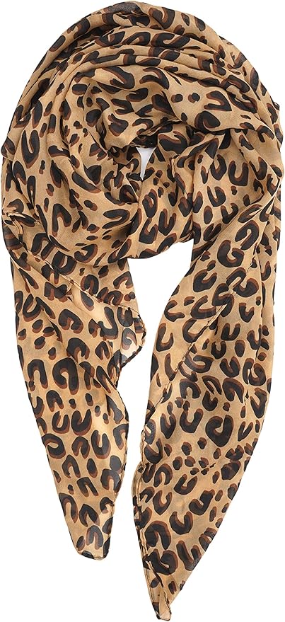 Ladies/Women's Lightweight Floral Print/Solid Color mixture Shawl Scarf For Spring Summer season (Leopard 1)