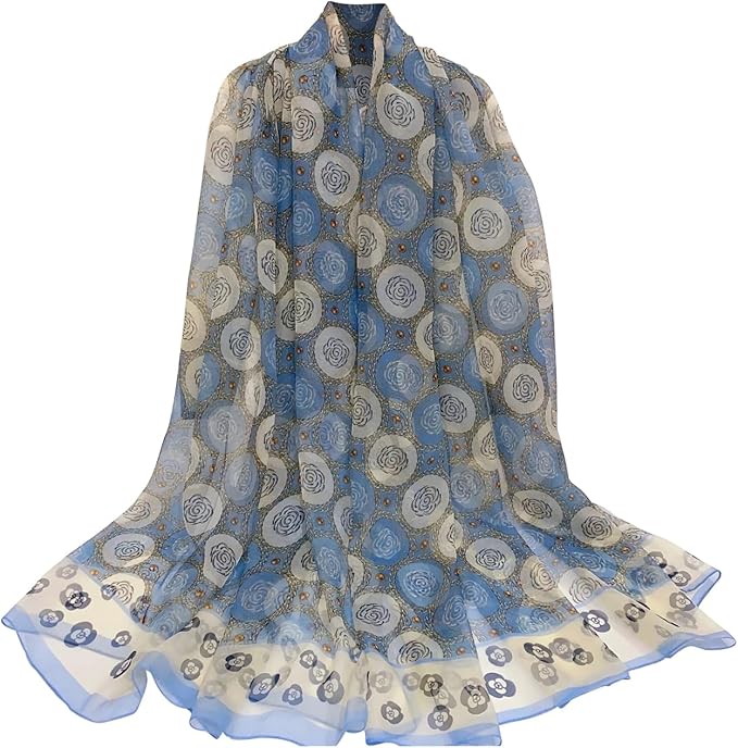 12 Pcs Scarfs for Women Lightweight Print Floral Pattern Scarf Fashion Silk Scarves Long Chiffon Shawl Christmas Party Gifts, 6