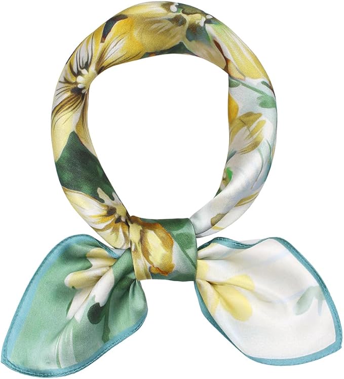 100% Pure Mulberry Silk Small Square Scarves -21'' x 21''- Digital Printed Neckerchief –Women Men Lightweight Scarf