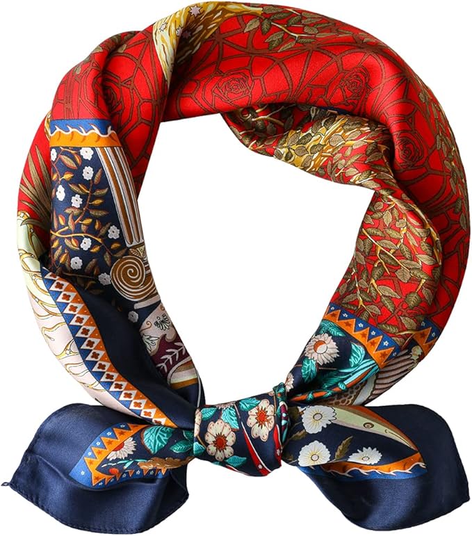 100% Mulberry Silk Scarf -21” Lightweight Square Neckerchief – Breathable Digital Printed Scarves with Gift Packed