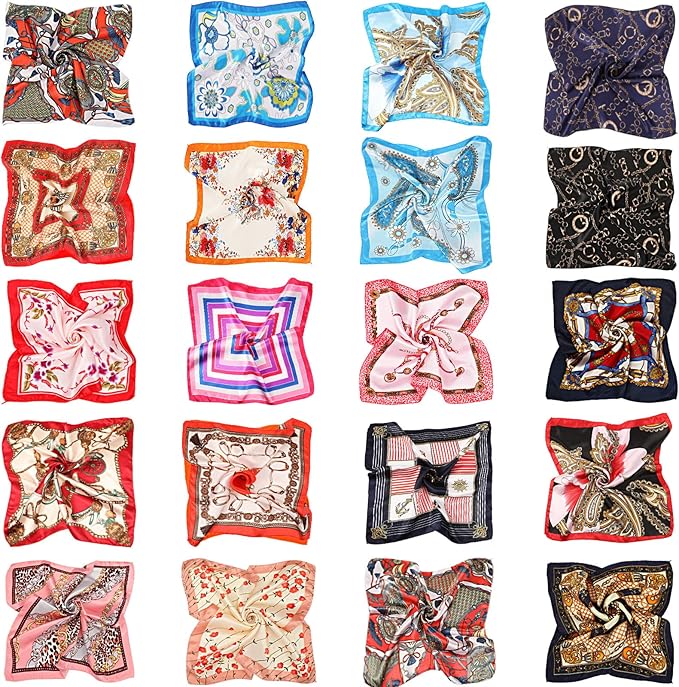 20 Pieces Women Satin Square Scarf Mixed Color Small Silk Neck Scarf for Women Girls Favors, Random Color