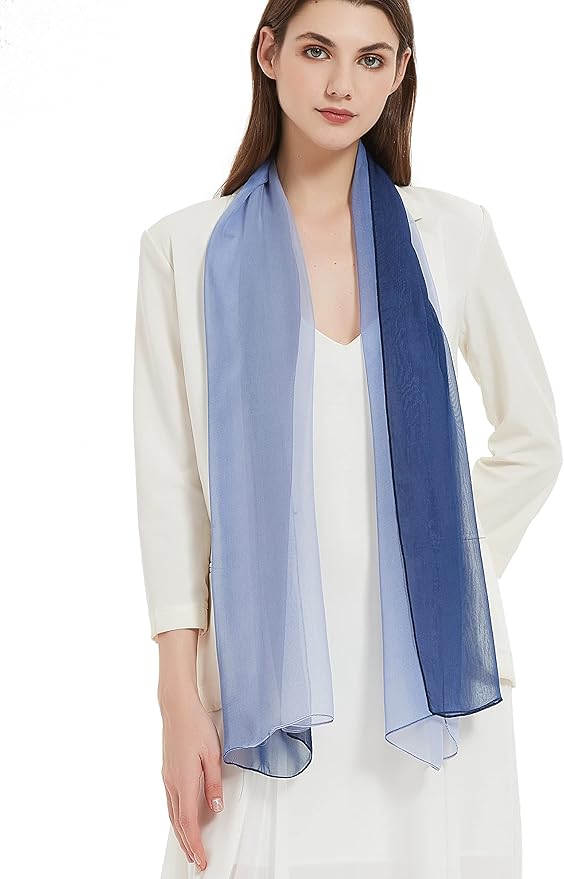 Long Chiffon Sheer Scarf Gradient Shaded Colors Lightweight Scarf For Womens