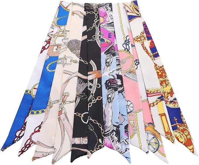 6 Packs Mixed Designs Satin Fashion Narrow Handbag Handle Wrap Ribbon Neckerchief Scarf for Women
