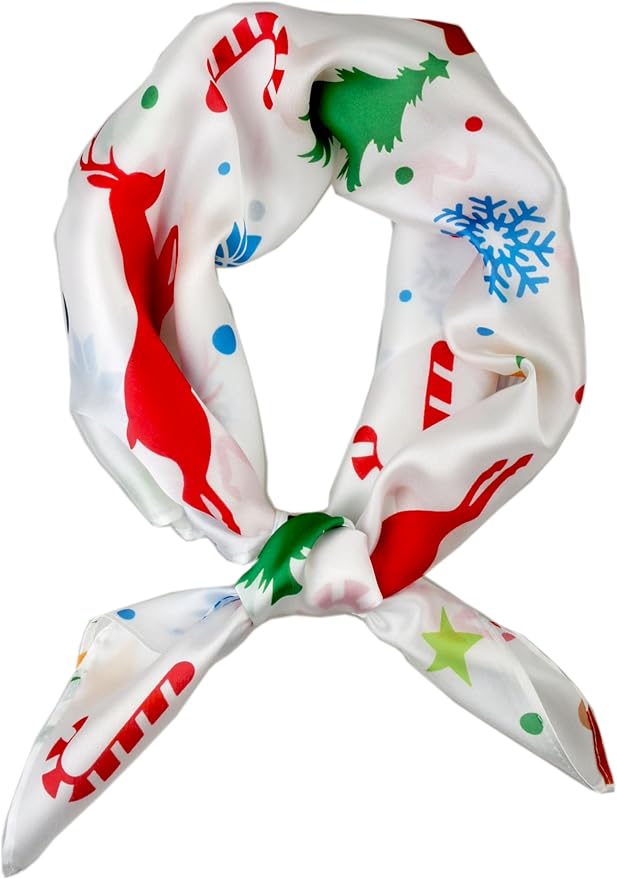 Gift Packed Silk Like Satin Fall Winter Holiday Christmas Square Scarf for Women Hair Scarves