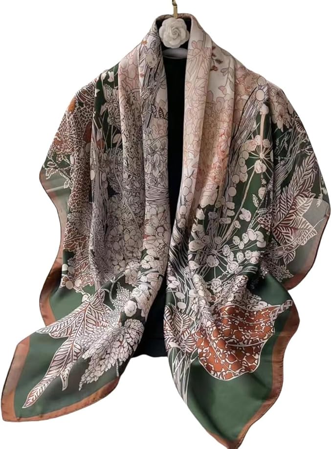 Women Silk Scarves Long Satin Lightweight Outdoor Shawl Wraps Printed Head Scarf 70''X35''