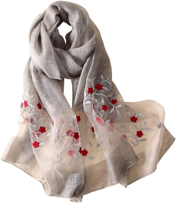 Women Lovely Silk&Wool Mixed Floral Embroidered Scarf Shawl Wrap