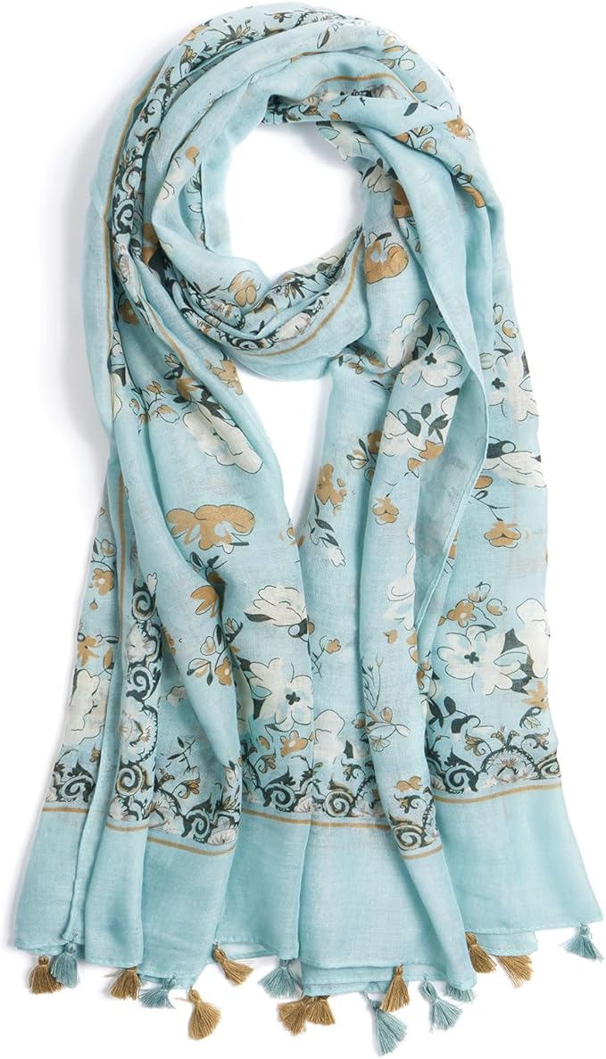 Scarf for Women Lightweight Fashion Floral Printed Scarves Boho Fall Winter Fringed Shawl Wraps